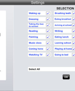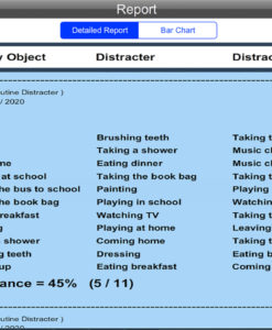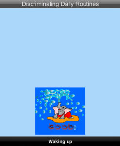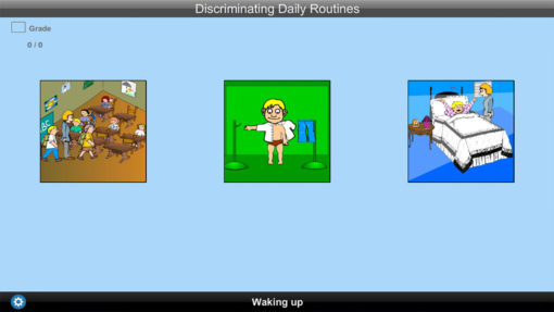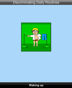 Here a daily routine activity is shown at the center of the screen. The student is asked to click on the matching activity shown among others at the center of the screen.