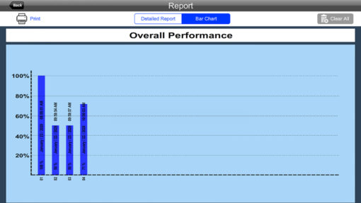 In “Matching Actions Using Pictures” an action is shown at the top of the screen. The student is asked to click on the matching action shown among others at the bottom of the screen.