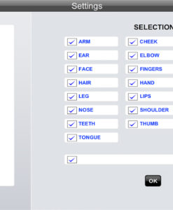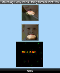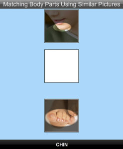 Here a body part is shown at the top of the screen. The student is asked to click on the matching body part shown among others at the bottom of the screen.