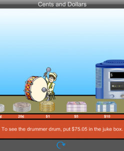 The user can then select “CENTS” or “DOLLARS” or “BOTH CENTS AND DOLLARS”. This will determine what kind of currency is stacked at the front of the platform for the next activity.