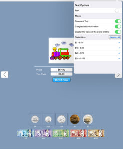 This program teaches the student to use coins and/or notes to pay the exact price of an item for sale. These programs can be used by kindergarten children or learning-disabled children……..
